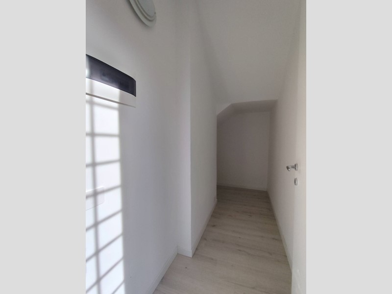 Lunità abitativa si apre su una zona giorno in ambiente unico con cucina a vista e area living, accessibile tramite portoncino blindato. Un comodo sottoscala risulta ottimale come spazio dispensa o per il deposito di attrezzatura di uso quotidiano.