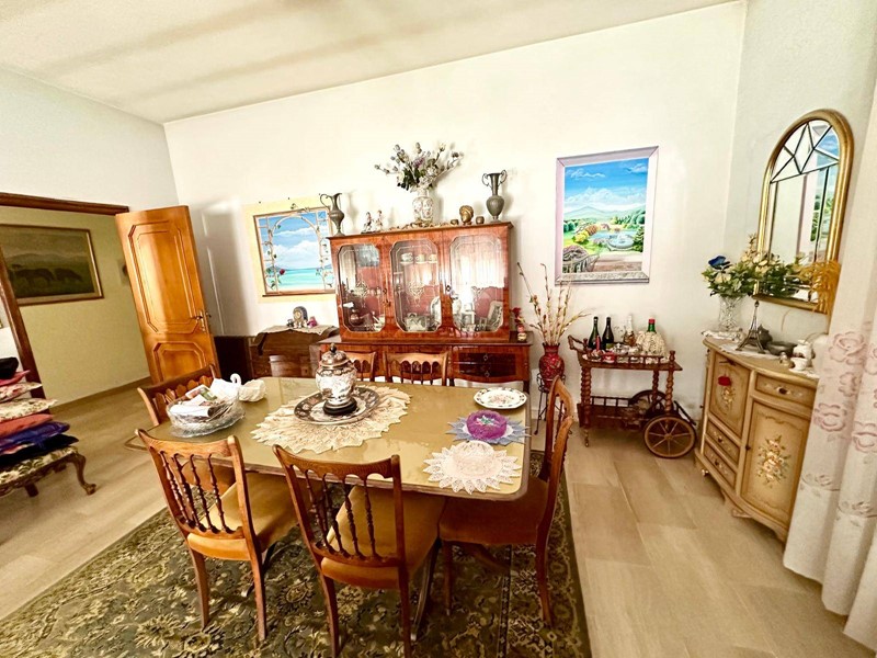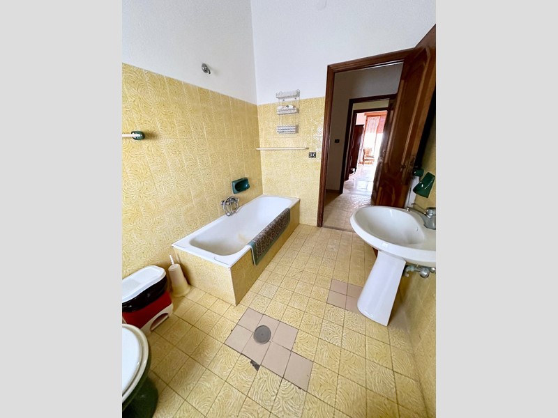 La casa è composta da un piano seminterrato, adibito a cantina ; un piano terra adibito a garage, ufficio, bagno e altra cantina ; piano primo adibito ad abitazione principale composta da cucinotto con dispensa, sala da pranzo, ampio soggiorno, tre camere da letto, studio, due bagni, balcone che si affaccia sulla via principale e sul lato standard comunale. Infine vi è il sotto tetto pari a ulteriori 200 mq circa, che potrebbe diventare una terrazza con vista mare. La casa è dotata di impianto di riscaldamento tradizionale con caldaia a gasolio. Il giardino risulta essere area edificabile, perciò vi è un potenziale edificatorio non indifferente. La casa può essere adibita anche a piccolo hotel con la realizzazione di una piscina e sistemazione dell'area giardino. Valledoria è un comune del Nord Sardegna, vicino al mare, infatti dista solo 800 metri dalla spiaggia di S. Pietro , dotata di tutti i servizi quali ristorazione, sdraio, ombrelloni ecc. ecc. Valledoria dista solo un ora dagli aeroporti di Alghero e Olbia, 30 minuti dal porto navale di Porto Torres.