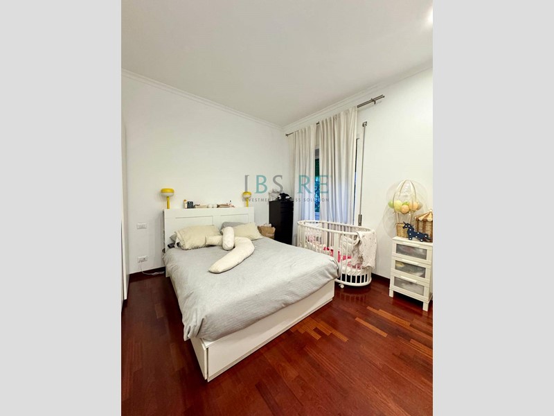 Gli ambienti sono rifiniti con pavimenti in parquet, libreria in muratura su misura nel soggiorno e cabina armadio nella camera da letto, soluzioni che valorizzano funzionalità e comfort.