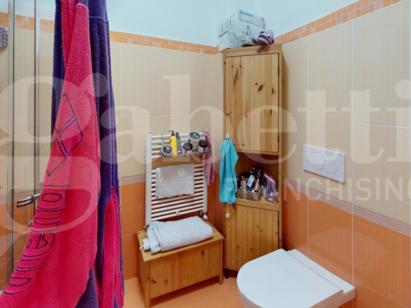 al piano seminterrato due camere da letto matrimoniali di 24 mq ciascuna e un bagno dotato di aspiratore e con box doccia.