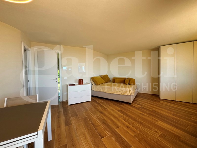 Al piano superiore troviamo un grande monolocale completo di cucina e/o utilizzabile come una stupenda suite matrimoniale con bagno privato e terrazza, sempre con vista lago.