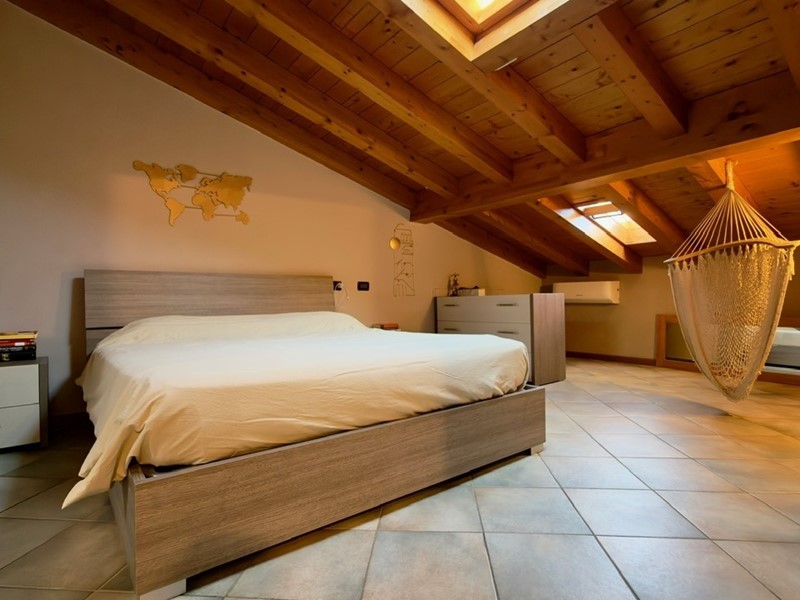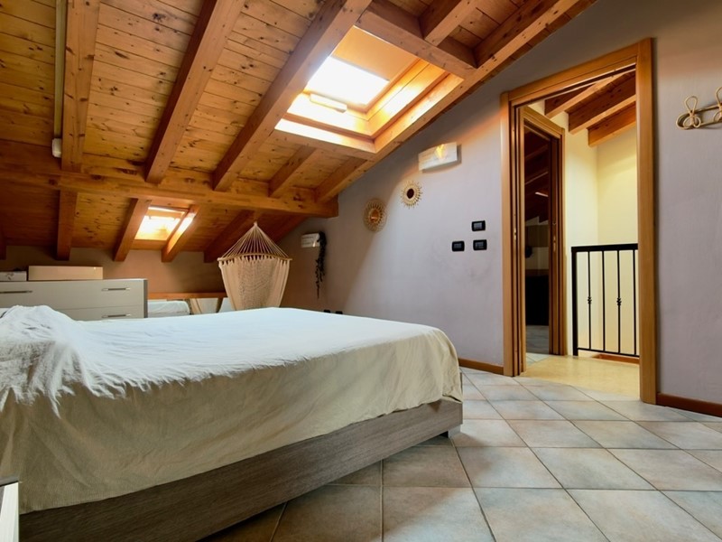 La scala ci conduce al piano primo, dove troviamo due camere sfruttabili, caratterizzate dalle travi a vista in legno, che danno carattere alla casa.