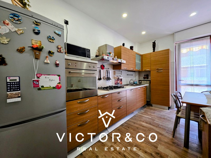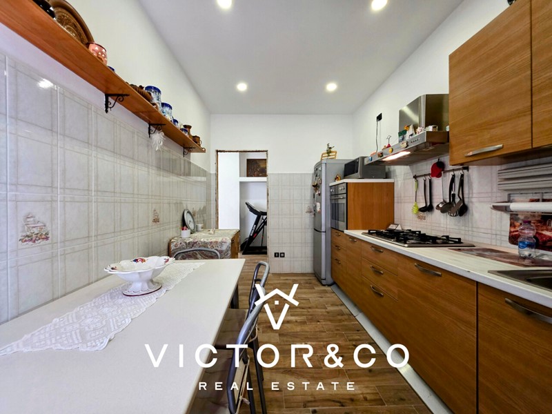 L’ingresso si apre su un soggiorno luminoso e accogliente, seguito da una cucina abitabile con spazi ben organizzati, ideale per chi ama cucinare e condividere i pasti in famiglia.