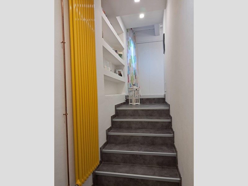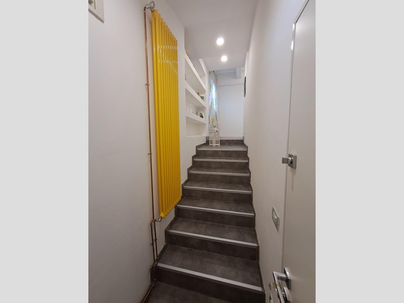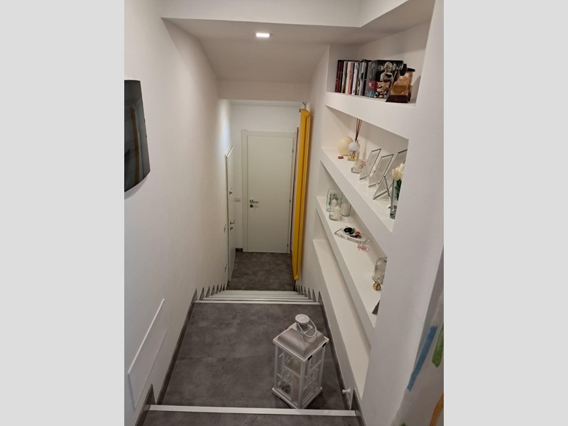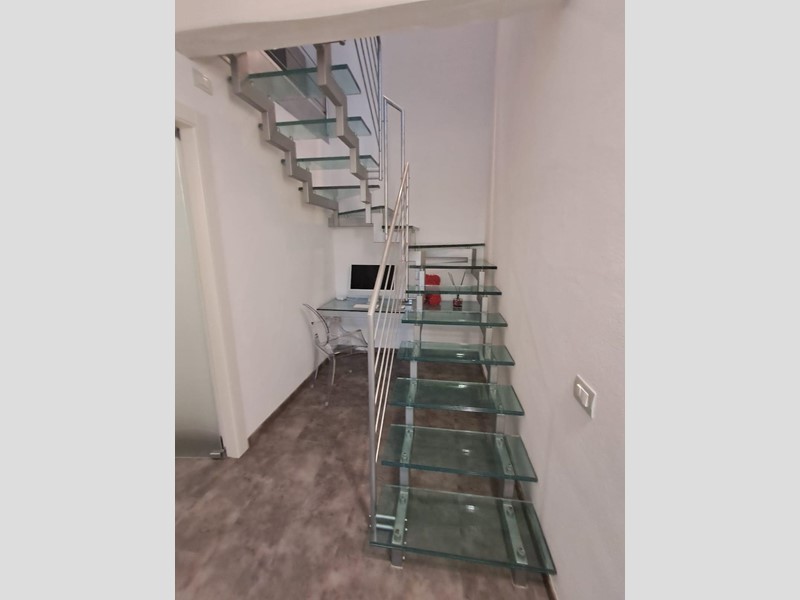 L’appartamento, disposto su due livelli di circa 110 mq totali, è posto al secondo piano di una palazzina di più appartamenti ed è così composto: entrati nell’appartamento troviamo sulla sinistra un vano lavanderia ben attrezzato e sulla destra le scale che conducono al disimpegno dove si sviluppa l’appartamento, a questo piano troviamo due camere da letto (una media e l’altra matrimoniale con bagno a vista completamente di vetro, nel centro della camera) un secondo bagno con sanitari sospesi, doppio lavandino e vasca da bagno di design; attraverso le originali scale, completamente in vetro, saliamo al piano superiore dove si presenta una bellissima sala provvista di impianto filodiffusione e cucina Scavolini rivestita in vetro antimacchia, conclude questo piano una accogliente terrazza panoramica di circa 20 mq, in questa parte della casa le rifiniture di alto livello con materiali e design di lusso combinate alla tecnologia per la gestione centralizzata delle funzioni abitative (comfort, sicurezza, efficienza energetica), rendono questo immobile unico nel suo genere.