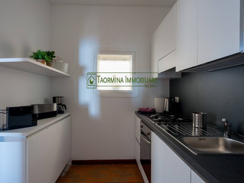 The comfortable kitchen, equipped with all the useful accessories, will allow you to taste the island dishes you want to taste, cheering your soul with the splendid nature that this enchanted corner of the world offers you. Your evenings can also be enlivened by the social life of Taormina's elegant living room, which is only 3 km from the complex, while your days can be spent on the fabulous private beach equipped at the foot of the rocky ridge that immerses you in the blue sea of ''Isola Bella.