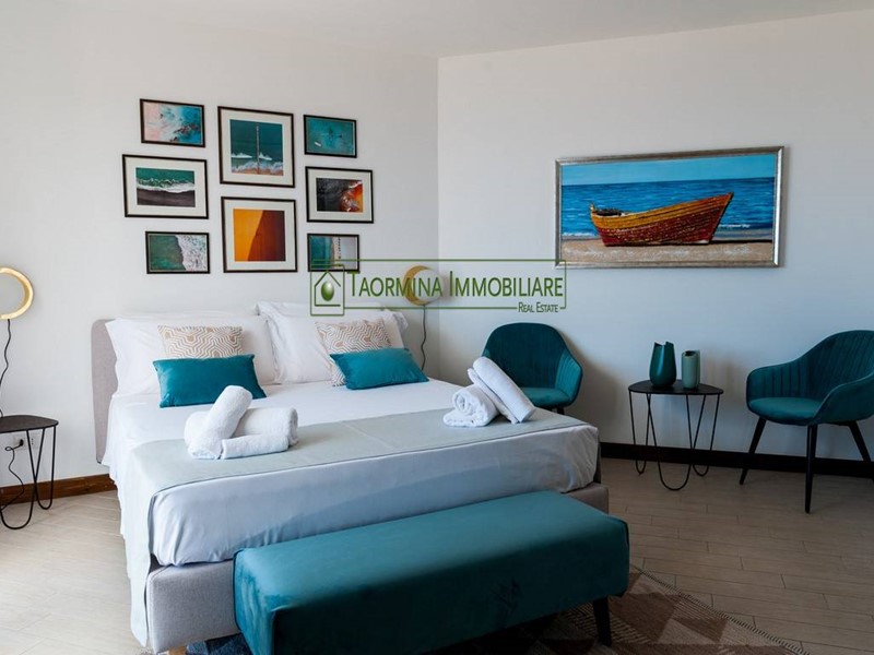 Splendid apartment nestled in the unique complex "Il Suk", overlooking the bay "Isola Bella" which you can enjoy the view from the magnificent living room with private terrace on the same level; the entire apartment furnished with designer furniture, has three double bedrooms, Ginestra, Zagara and Trinacria, air conditioned and with a balcony overlooking the sea, two completely independent annexes, Sikelia and Aretusa, with double bedroom and private bathroom, can accommodate friends who want to share their holidays with you in the "Pearl of the Ionian".