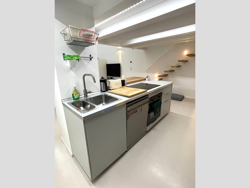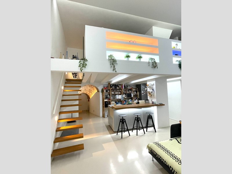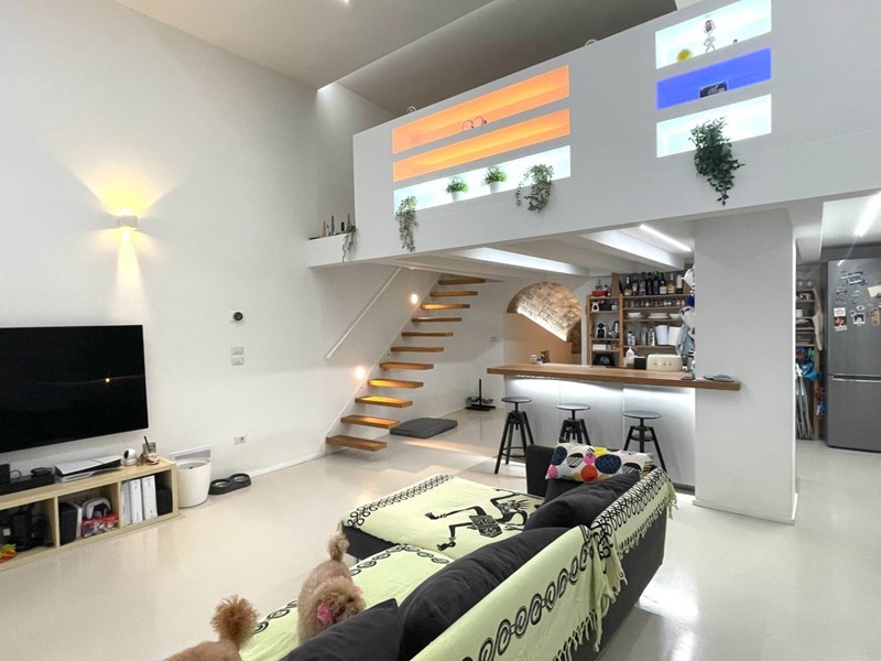 Lo Spazio: Open space arioso con un soppalco di 17 mq, perfetto come zona notte riservata o ufficio creativo.