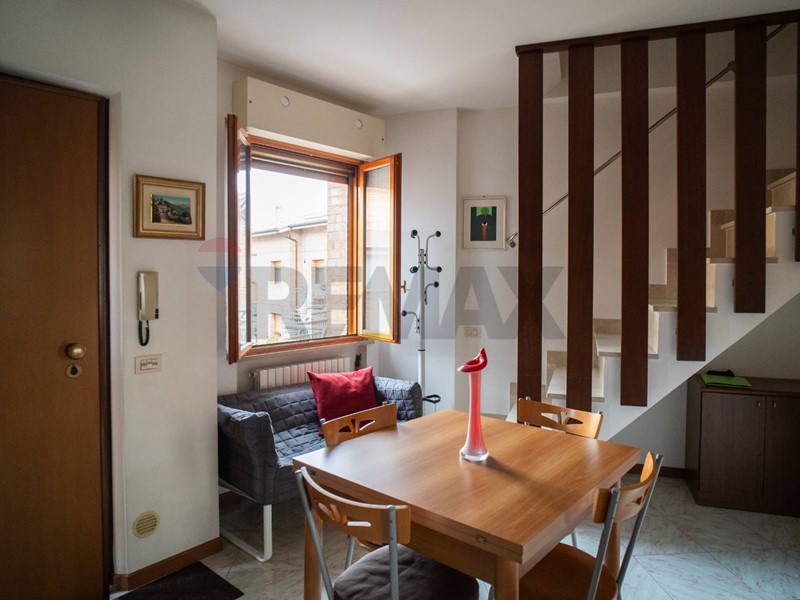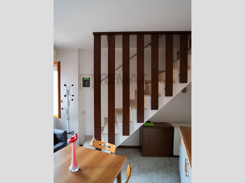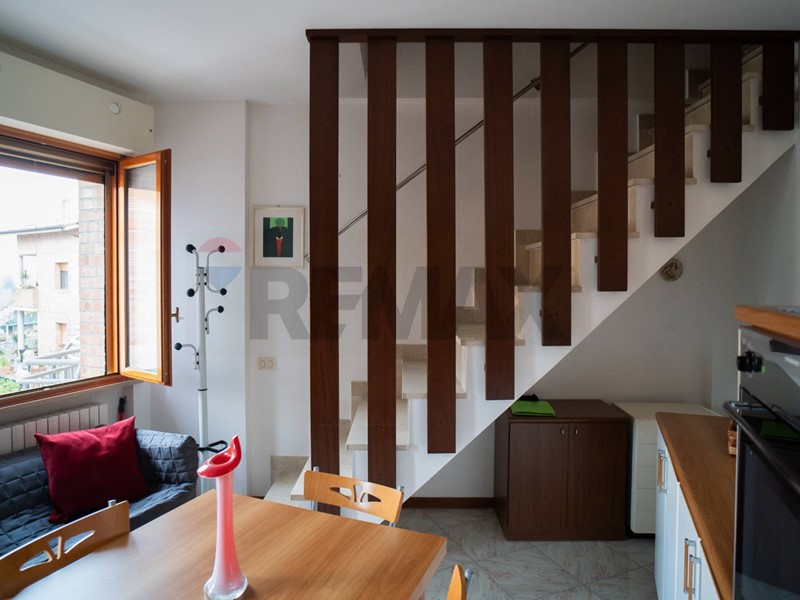 L'immobile è disposto su due livelli ed è composto da ingresso con balcone in condivisione con il vicino, zona giorno con angolo cottura, camera matrimoniale con balcone, bagno finestrato con box doccia, salendo al piano superiore troviamo una soffitta ben rifinita dove è possibile sviluppare o una seconda stanza da letto o una zona relax, è presente anche un secondo bagno con piccolo box doccia ed un terrazzino a tasca con ripostiglio.