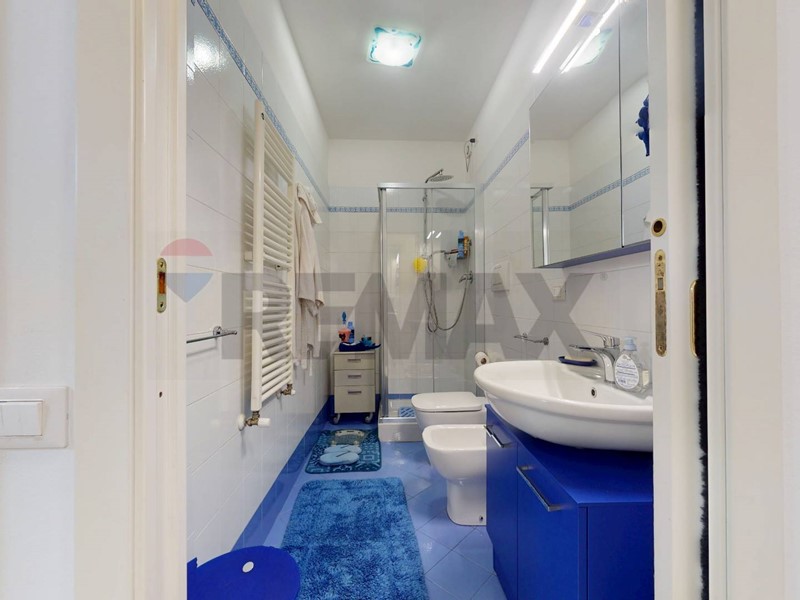 Inoltre, l'appartamento dispone di 2 bagni moderni e completamente ristrutturati, uno con doccia e l'altro con vasca da bagno. L'immobile è stato completamente ristrutturato e gli impianti sono nuovi e a norma, vi è anche la presenza di aria condizionata, garantendo comfort e sicurezza a lungo termine.