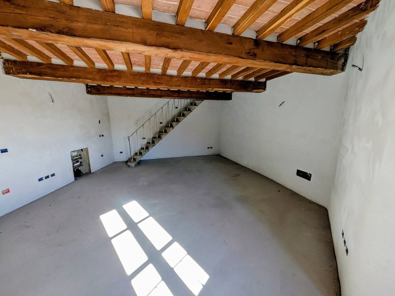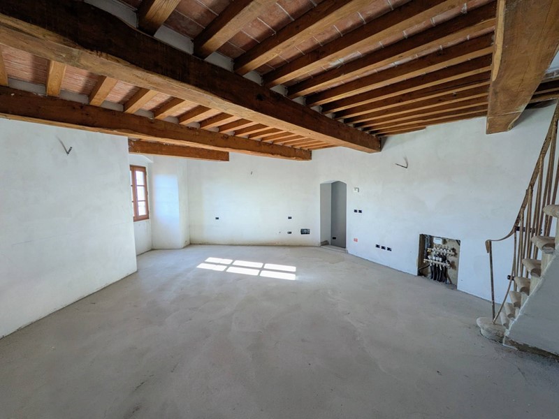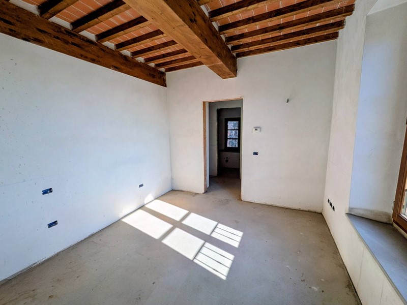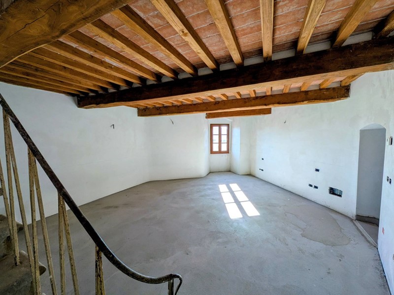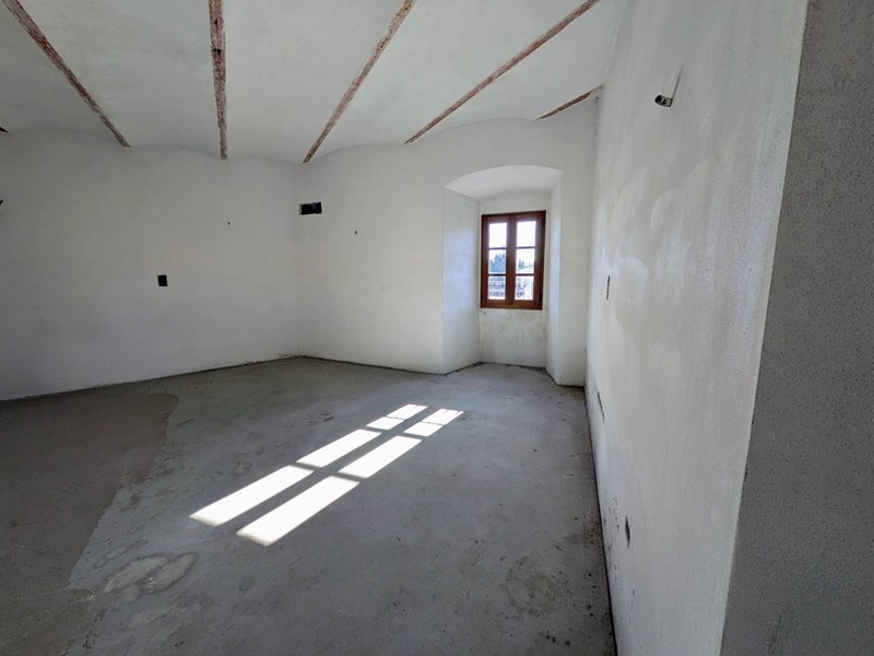 Dal soggiorno, scendendo di livello, si raggiunge la suite matrimoniale, impreziosita da un ampio bagno privato, concepita per offrire funzionalità e comfort in totale privacy. Salendo, invece, si accede alla magnifica terrazza panoramica, situata sulla sommità della torre: un luogo esclusivo e riservato dal quale lo sguardo si apre sull'intera valle, regalando panorami di straordinaria bellezza e tramonti indimenticabili.
