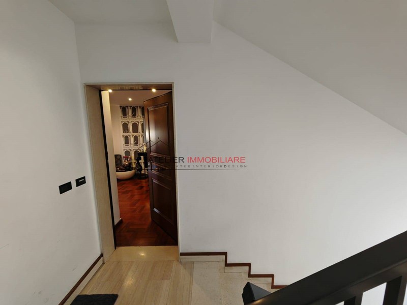Limmobile si distingue per la presenza di una pregiata pavimentazione in parquet a mosaico in legno massello essenza Doussié, posato a disegno geometrico, elemento che conferisce continuità, calore e raffinatezza a tutti gli spazi.