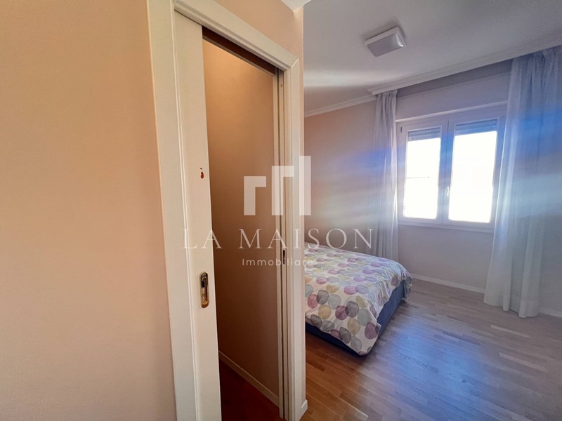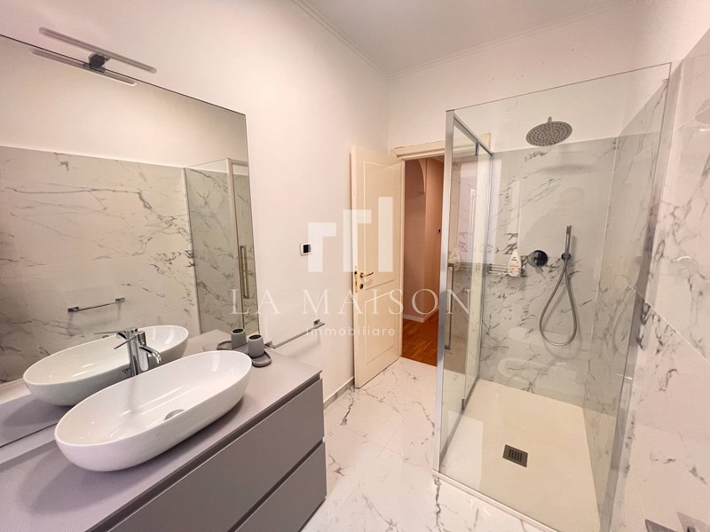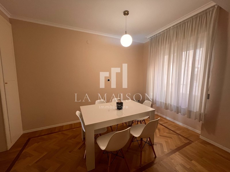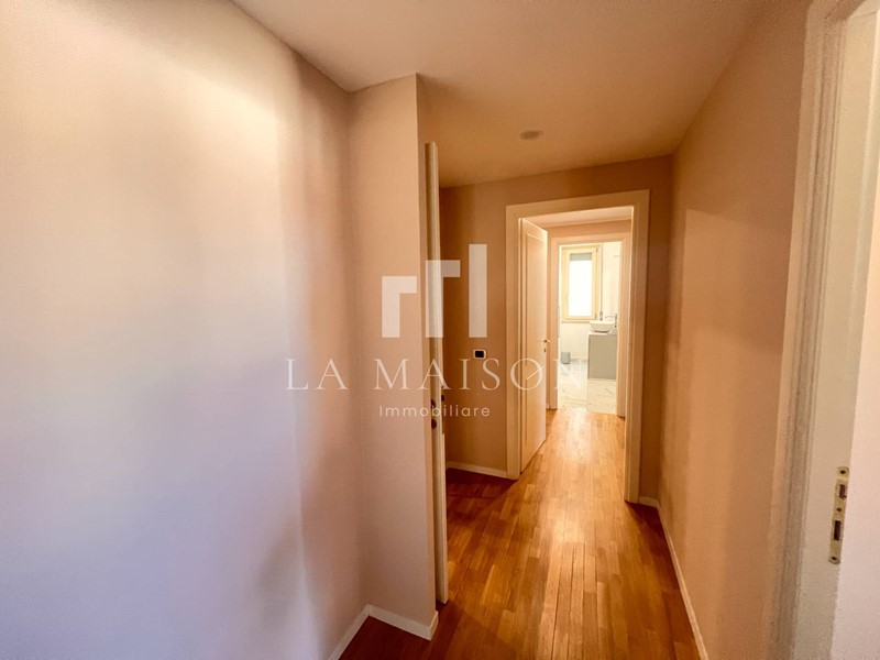 L'immobile si distingue per l'ingresso elegante, un'ampia e luminosa sala con balcone, cucina abitabile, tre camere da letto (di cui due con cabina armadio) e due bagni, impreziosito da nuovi e pregiatissimi pavimenti in parquet che donano calore e raffinatezza ad ogni ambiente.