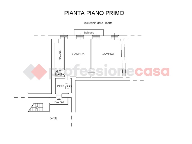 L'alloggio, posto al piano primo, si sviluppa con ingresso su comodo e pratico disimpegno, dotato di armadiature a muro, soggiorno con cucina a vista, una camera da letto di generose dimensioni e un bagno finestrato con doccia.
