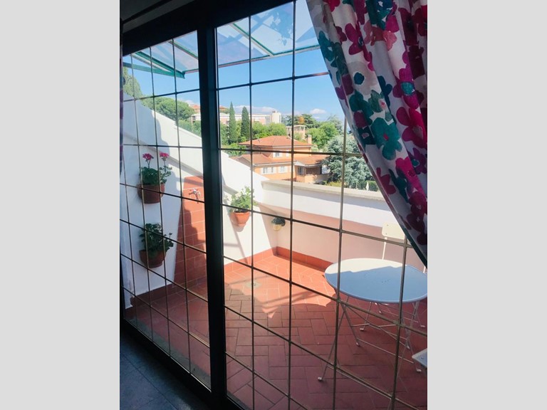 Via Paganico adiacente Viale Oberdan in esclusivo complesso residenziale con curatissimo parco condominiale attichetto con splendida esposizione panoramica ampio soggiorno camera cucinotto attrezzato con piano fuochi ad induzione servizio terrazzino vivibile aria condizionata abitazione con ottimo risparmio energetico. Ne completano la proprietà un'ottima possibilità di parcheggio. LIBERO DAL 1 APRILE 2026. Tel. 06/7913643