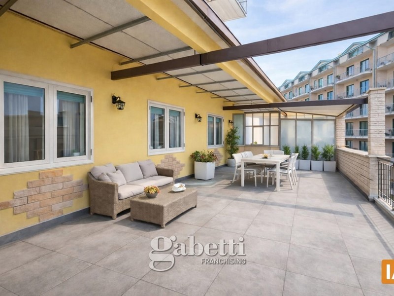 In zona residenziale ottimamente servita proponiamo ampio appartamento con comodo terrazzo sito al primo piano. La soluzione si compone di ingresso, sala da pranzo con cucinino, soggiorno servito da uno splendido terrazzo di oltre 40 mq, tre camere matrimoniali, due bagni, veranda e ripostiglio.