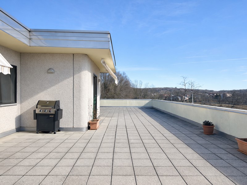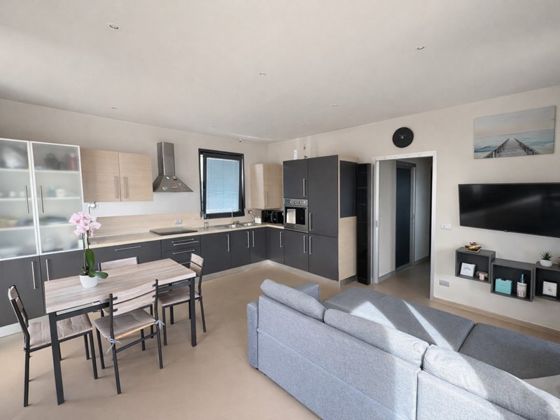 L'appartamento si compone di ampia zona giorno con cucina a vista, molto luminosa e con accesso diretto a uno splendido terrazzo di circa 70 mq, ideale per pranzi all'aperto, momenti di relax e per vivere pienamente lo spazio esterno.