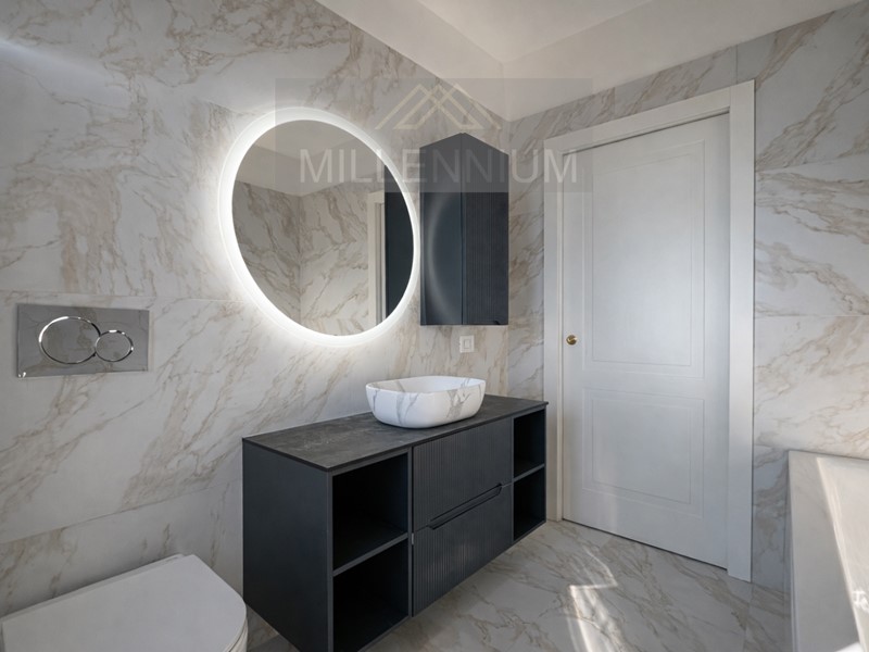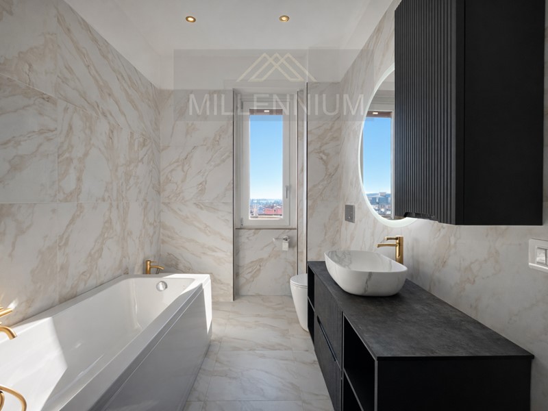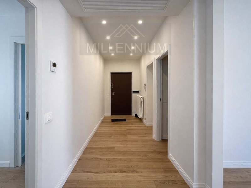 L'ingresso accoglie con discrezione, offrendo un pratico ripostiglio, e conduce alla grande zona giorno con cucina a vista, uno spazio aperto, arioso e pensato per essere vissuto con stile. Le tre camere da letto, ben distribuite, garantiscono privacy e funzionalità, mentre i due bagni, moderni, completano l'atmosfera contemporanea e curata dell'immobile.