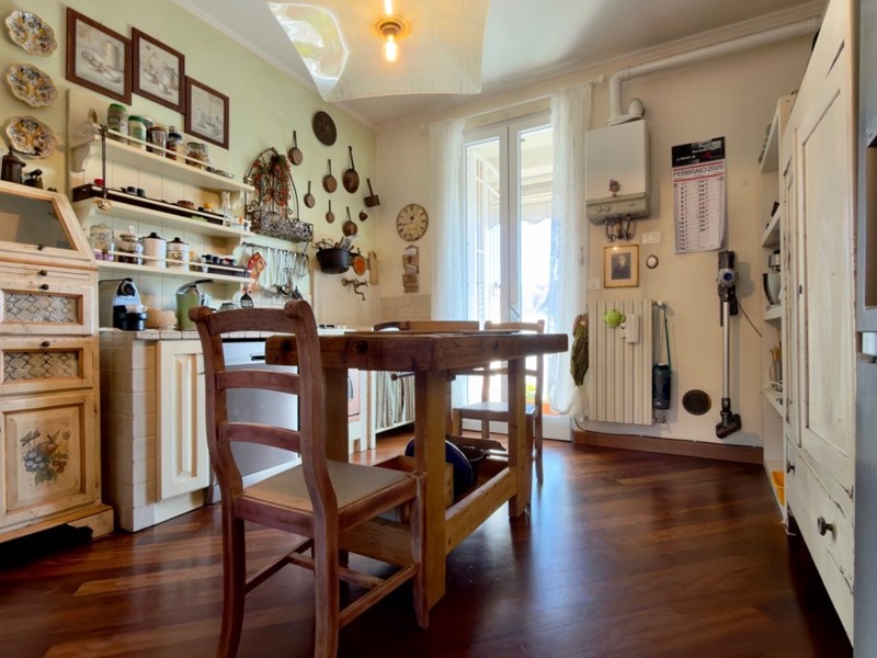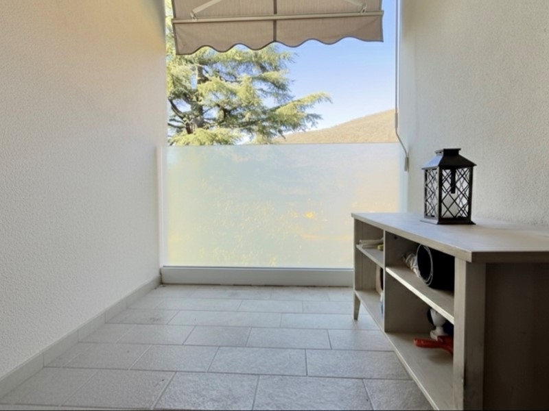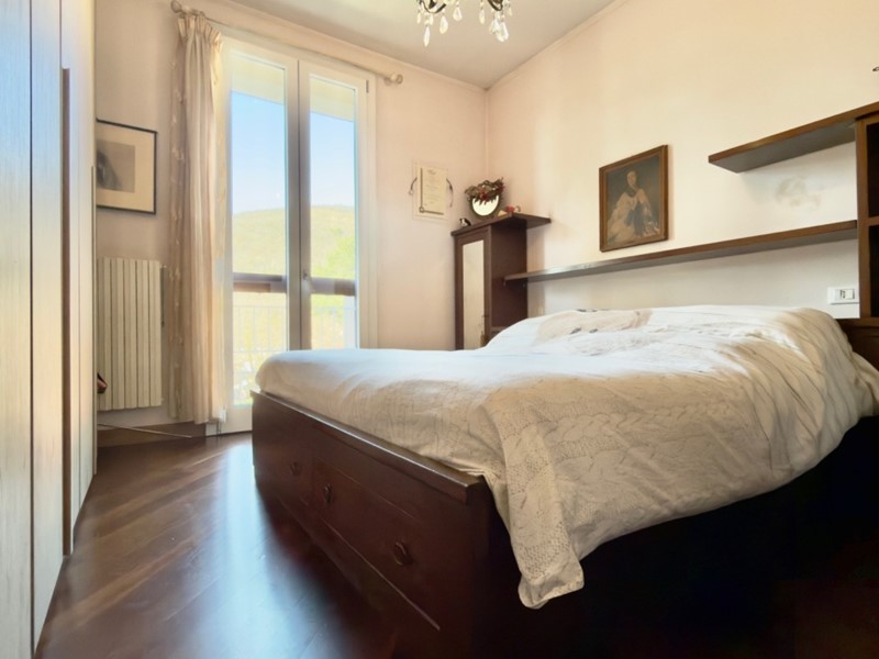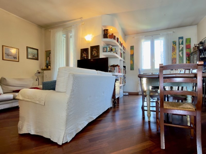 Entrando, si nota come il soggiorno con cucina open space sia il cuore di questa casa, offrendo un ambiente ben rifinito, grazie alla totale e recente ristrutturazione con pavimenti in parquet. Dalla loggia accessibile dal living lo sguardo si apre sui monti..