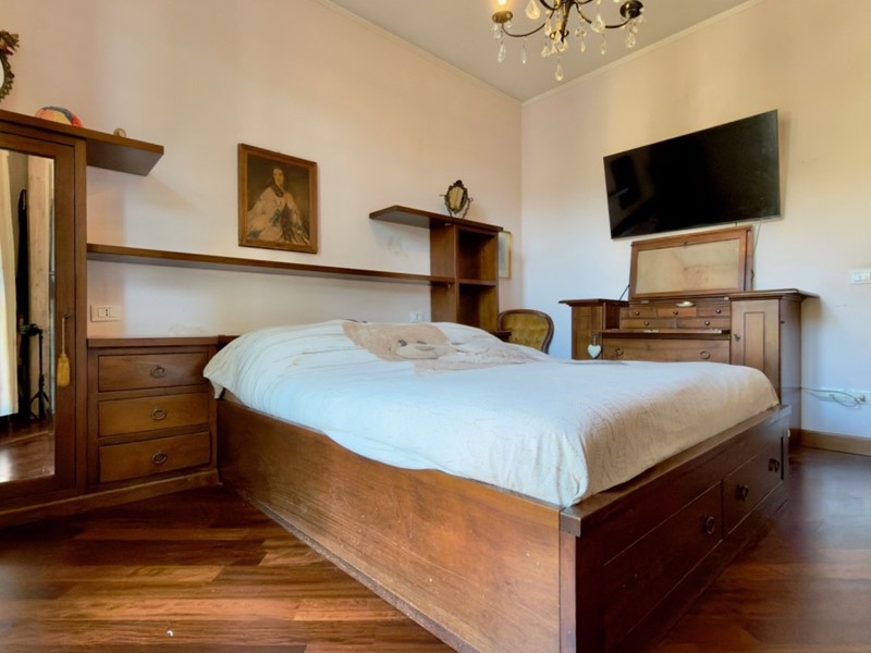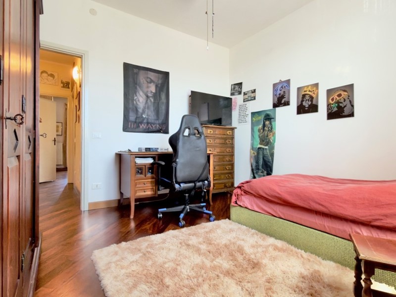 La zona notte offre due camere matrimoniali, anch’esse rifinite in parquet; il bagno, spazioso e ben curato, completa l’appartamento.