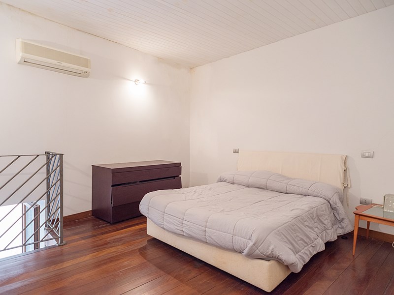 Al livello superiore, il parquet caldo ti conduce a una zona letto open e una camera da letto con bagno privato e spogliatoio. Le pareti bianche donano luminosità e serenità, elevando l’animo.