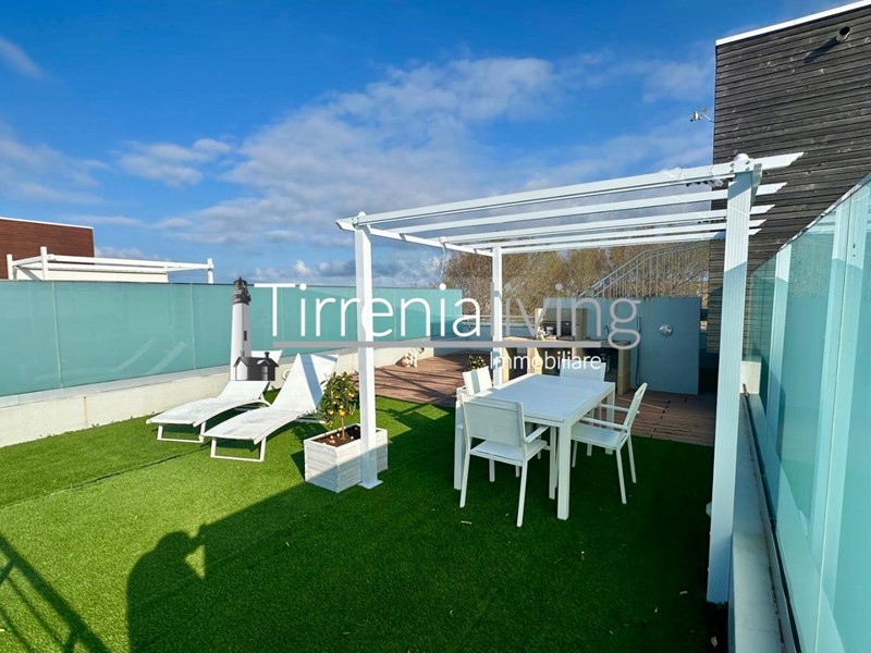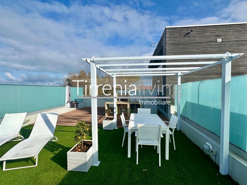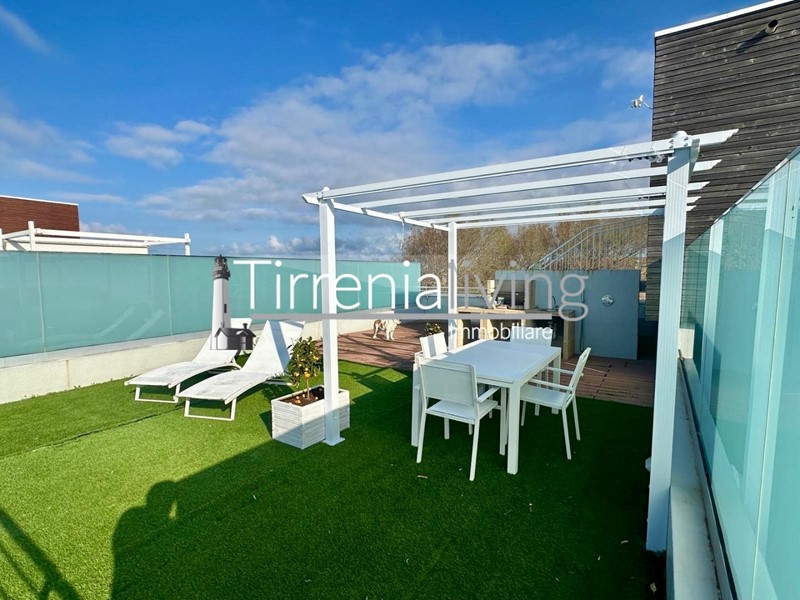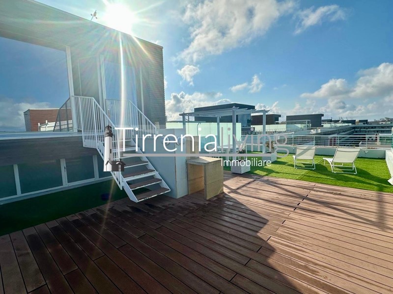 Calambrone - Scopri questo splendido appartamento su due piani, situato a Calambrone, disponibile per la locazione estiva. Questo immobile di recente realizzazione, completamente ristrutturato nel 2013, offre un ambiente moderno e accogliente. Al secondo e ultimo piano, l'ingresso si apre su un luminoso soggiorno con angolo cottura, perfetto per momenti di convivialità.