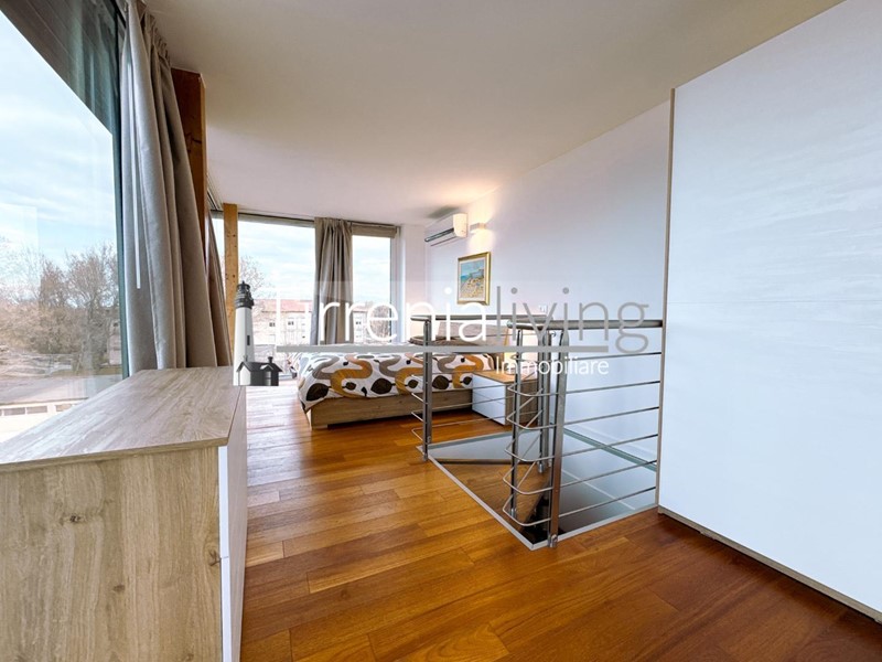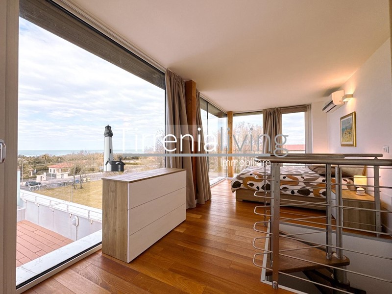 Il balcone adiacente è ideale per godersi il sole e la vista circostante. La camera matrimoniale principale è spaziosa e ben illuminata, mentre il bagno con doccia e finestra garantisce comfort e praticità. Una scala conduce al vano lanterna, dove si trova una seconda camera matrimoniale con vista mare, perfetta per rilassarsi.