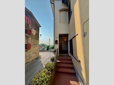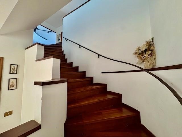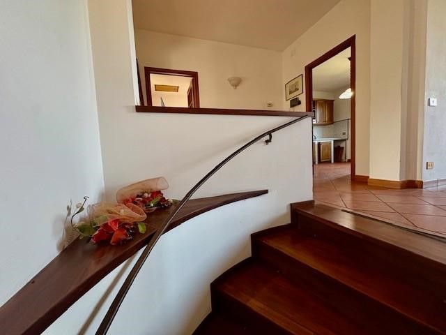 Dal portoncino si accede ad un ampio disimpegno, dove si trovano delle comodissime scale rivestite in parquet che portano al piano superiore dove si sviluppa l’appartamento.