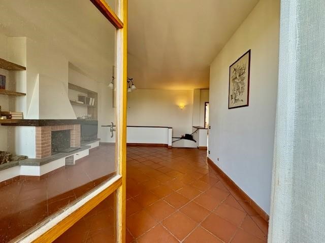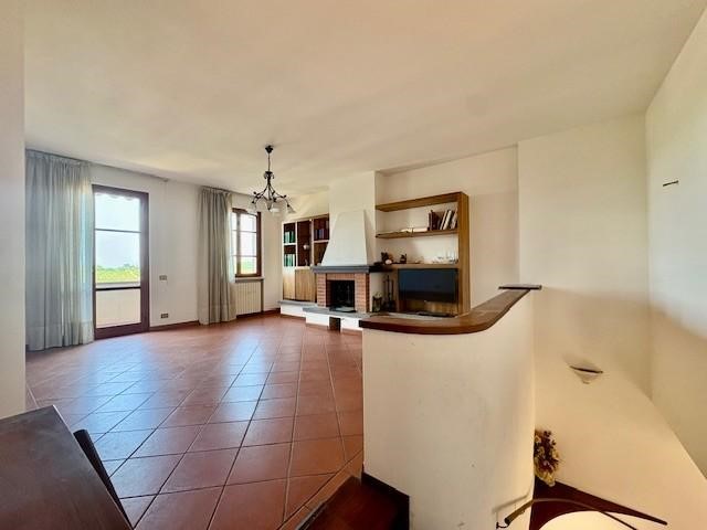 Da qui, ci troviamo nell’ampio soggiorno con camino a legna, molto luminoso grazie alla finestra e alla portafinestra, dalla quale si accede al balcone con vista mozzafiato sulle colline!