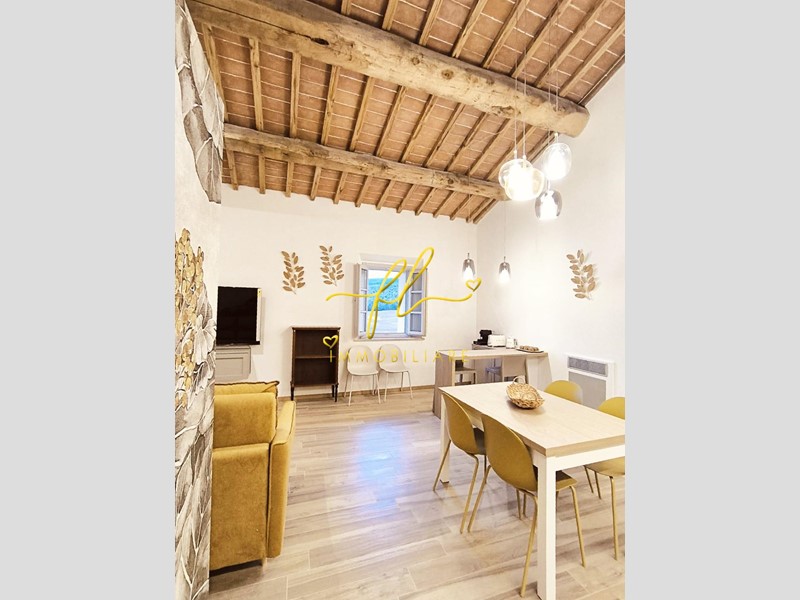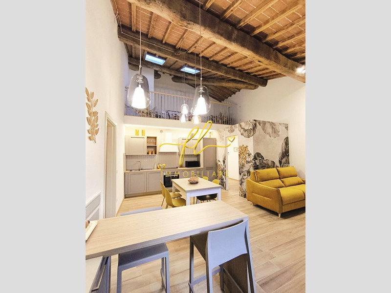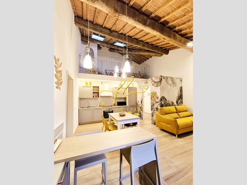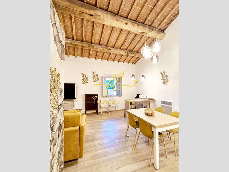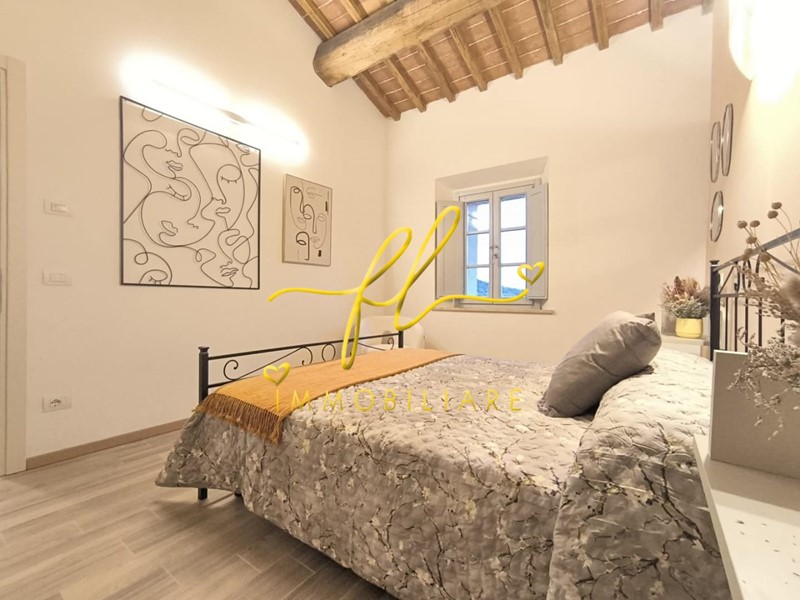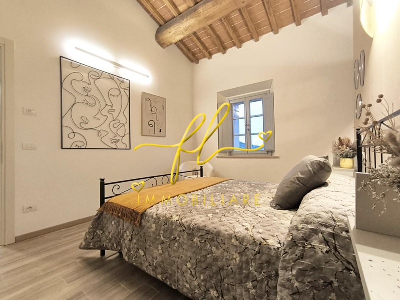La residenza coniuga il fascino dell’architettura toscana con il comfort contemporaneo: travi lignee a vista, altezze importanti e ambienti luminosi dialogano armoniosamente con una ristrutturazione attenta e di qualità.