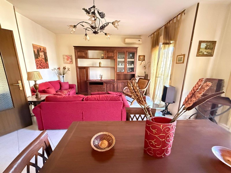 Ampio ingresso, salone doppio, cucina abitabile, tre camere da letto, due bagni e ripostiglio.