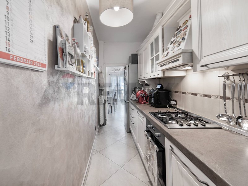 Zona Giorno: Ingresso su ampio e luminoso soggiorno con accesso diretto al balcone verandato con affaccio sul cortile interno, e cucina separata.