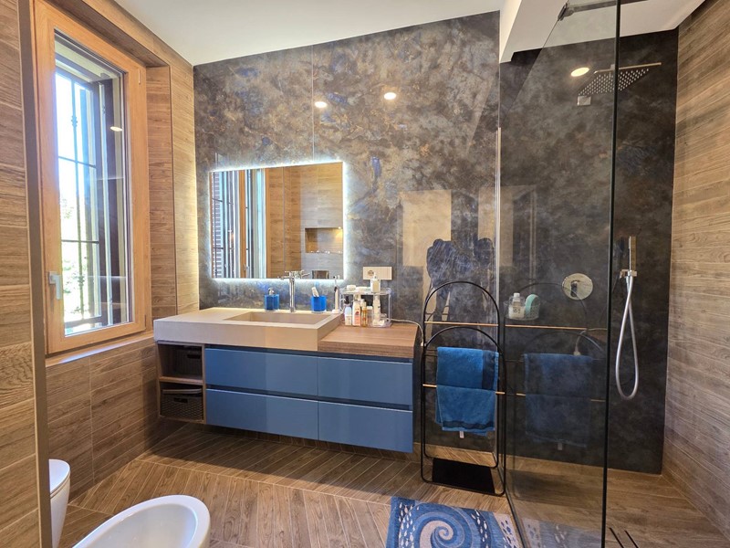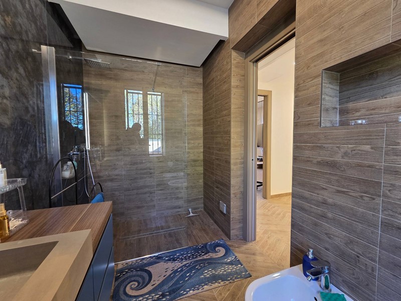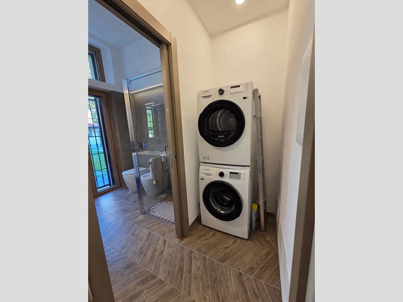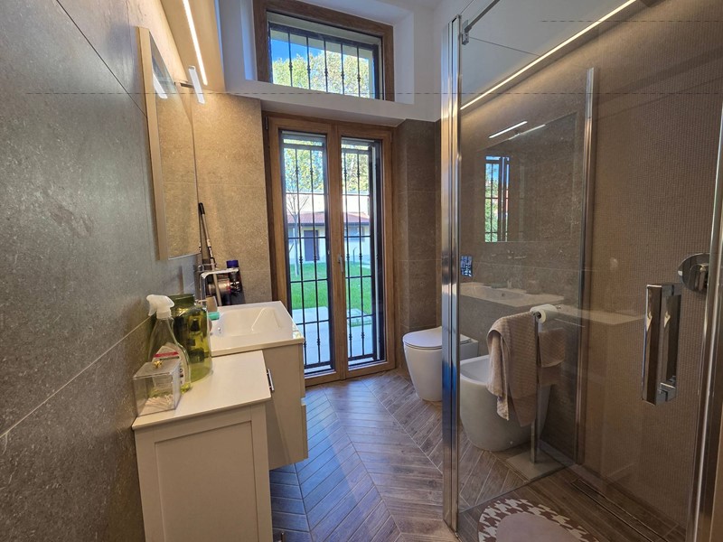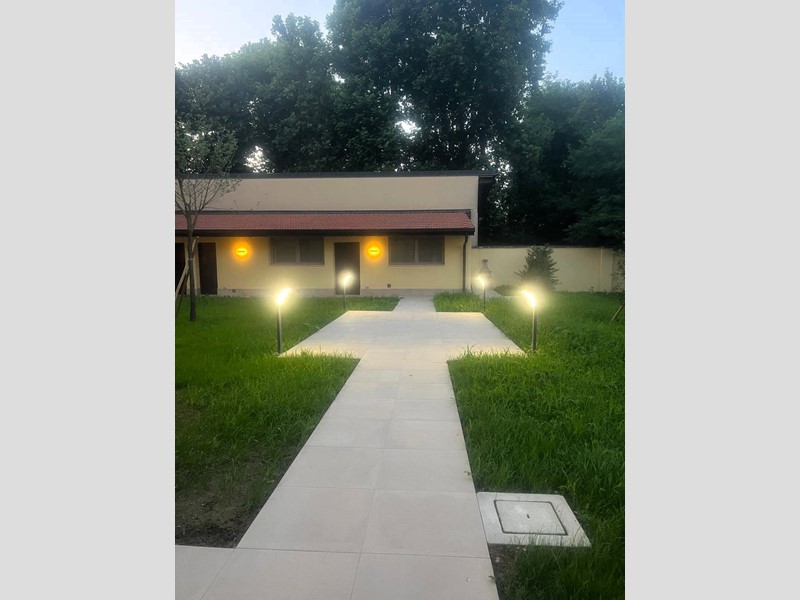 Immobile in perfette condizioni, pari al nuovo, con finiture di lusso e materiali di prima scelta. Impianti indipendenti per le due soluzioni abitative presenti, riscaldamento a pavimento con pompa di calore, climatizzazione canalizzata, infissi extra-misura in pvc e persiane in alluminio, inferriate a tutte le finestre, predisposizione antifurto e impianto fotovoltaico con batterie di accumulo. Pavimentazione in gres effetto legno in tutti i locali, porte interne Bertolotto, impianto di irrigazione automatico prato e siepi, illuminazione esterna e sulla facciata.