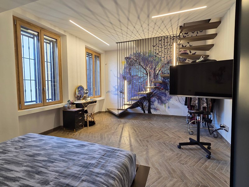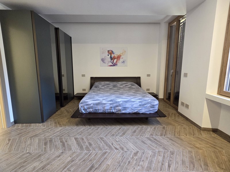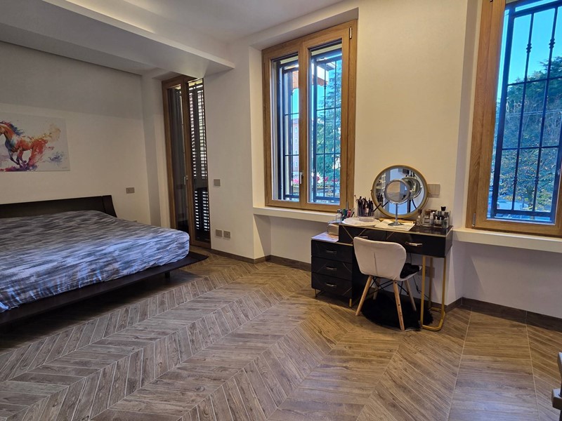 P.1° con una grande camera matrimoniale illuminata da 2 finestre e una portafinestra che dà accesso al balcone, cameretta e bagno padronale finemente rifinito.