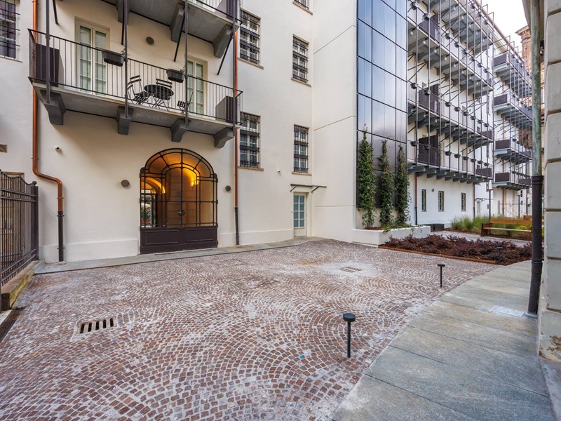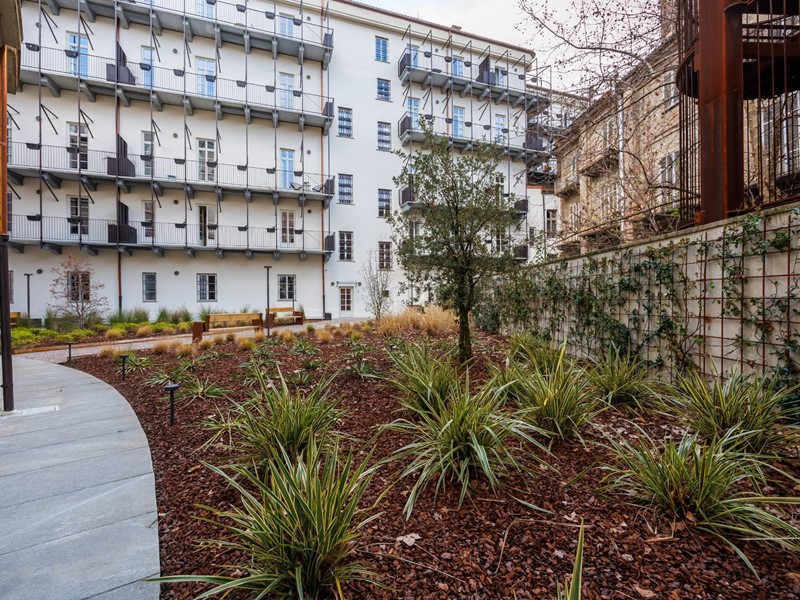 E prevista una corte interna, con aree verdi alternate a camminamenti.