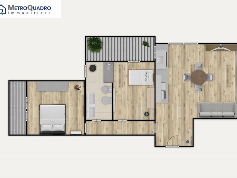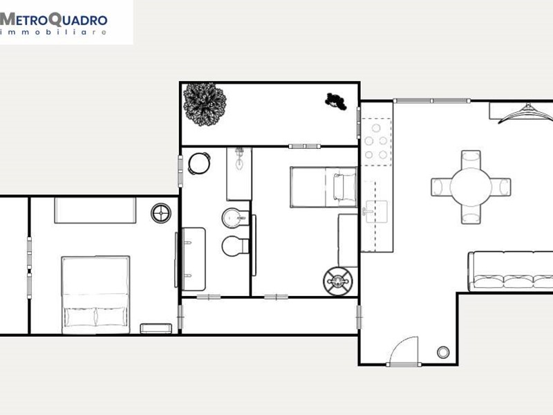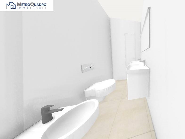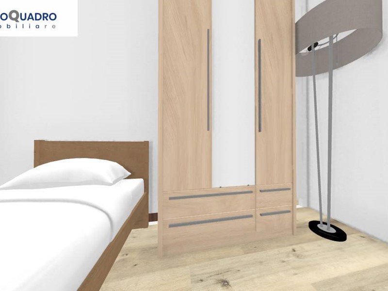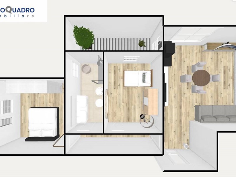 Grazie alla metratura generosa e alla disposizione degli ambienti, è possibile trasformarlo in un confortevole trilocale, con la potenzialità di realizzare anche un piccolo secondo bagno in camera.