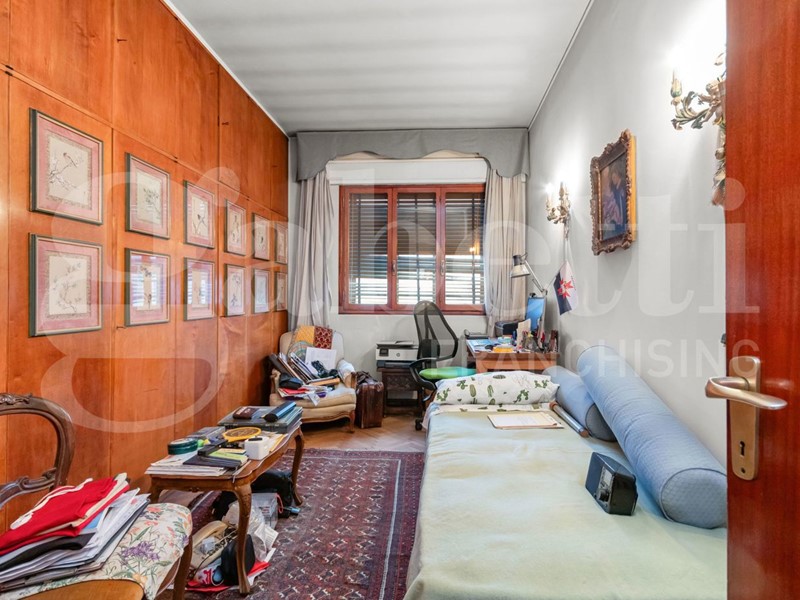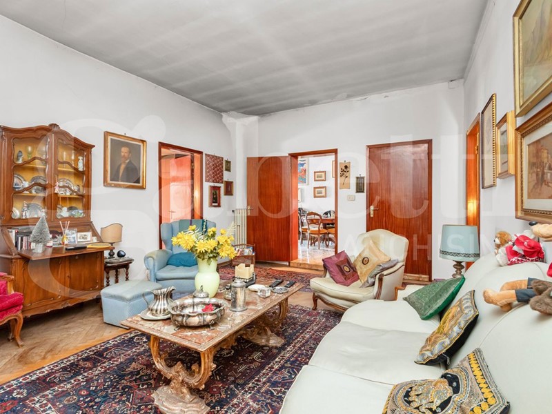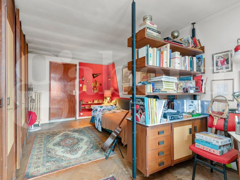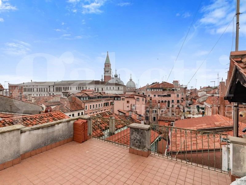 L'attuale distribuzione interna prevede una luminosa zona giorno composta da ingresso, soggiorno, cucina e sala da pranzo dalle quali si accede a una terrazza al piano con vista sul campanile di San Marco; la zona notte comprende tre camere da letto e bagno finestrato. Completano la proprietà una soffitta al quinto piano, raggiungibile dall'ampia terrazza panoramica di circa 60 mq, e un magazzino al piano terra.