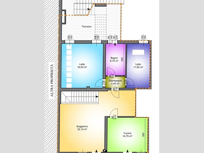 Salendo al primo piano, la zona living si apre con un soggiorno luminoso e una cucina abitabile che si affaccia su un terrazzo privato. La zona notte comprende una camera matrimoniale, una seconda camera perfetta come studio o cameretta, e un secondo bagno. Completa la proprietà un'autorimessa aperta.