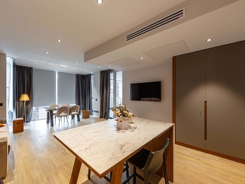 Questa residenza incarna una nuova concezione dell'abitare contemporaneo, dove eleganza, tecnologia e sostenibilità convivono armoniosamente. L'impiantistica di ultima generazione include riscaldamento a pavimento, raffrescamento canalizzato estivo con suddivisione in zone, VMC centralizzata, contabilizzazione autonoma e fotovoltaico condominiale. No carbon.