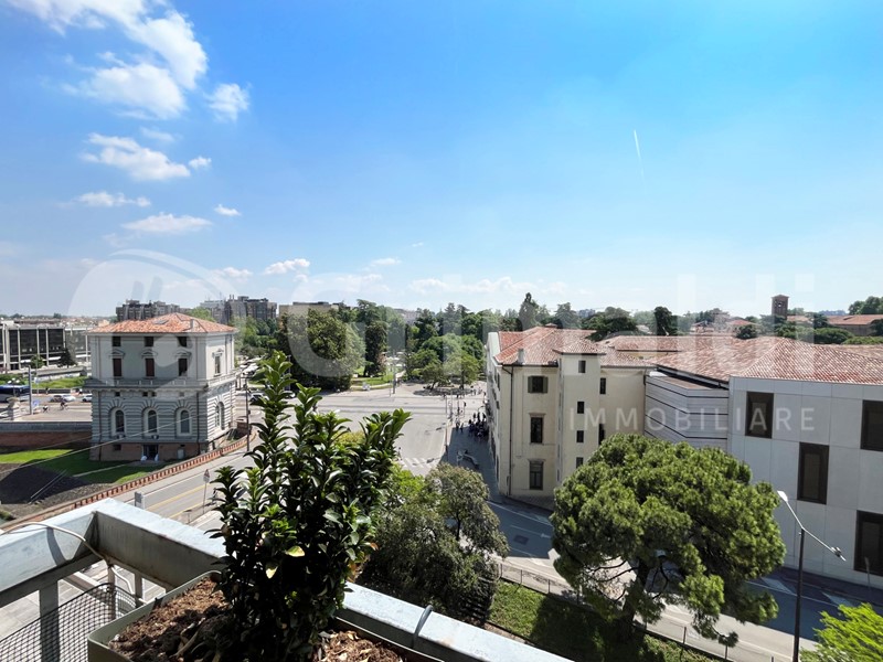 CENTRO STORICO. A pochi passi da tutti i servizi di primaria importanza, inserito in elegante contesto, luminoso e ampio appartamento con bella vista panoramica. Ampio ingresso, delizioso salotto, salone con zona pranzo, terrazzo vivibile con vista sui Giardini dell'Arena, cucina abitabile, disimpegno zona notte, 2 camere matrimoniali molto spaziose di cui una con cabina armadi, 2 bagni e una comoda stanza guardaroba. Completa l'abitazione una cantinola e uno spazioso posto auto coperto di proprietà. Infissi con vetrocamera, impianto di climatizzazione canalizzato, pavimenti in legno. Ape 137,3 Cl E