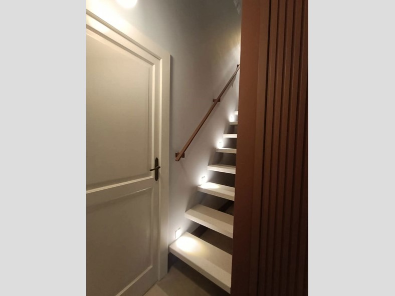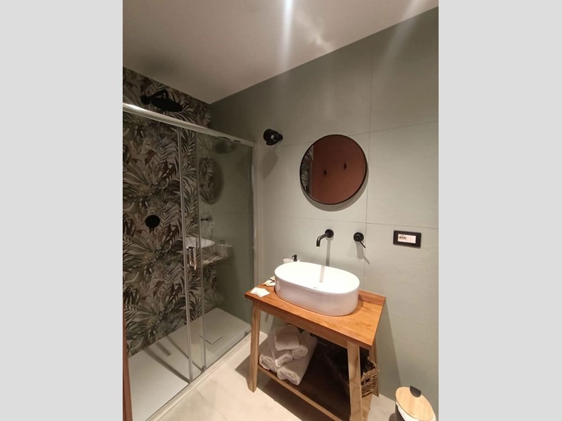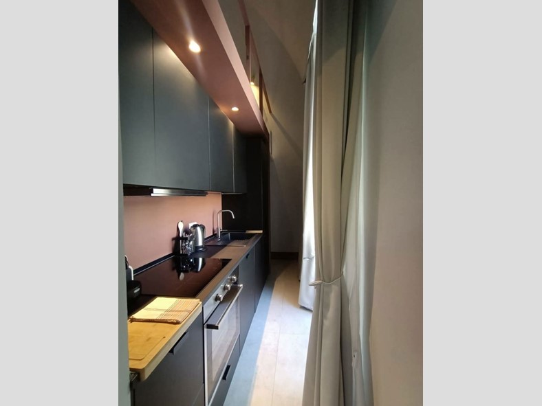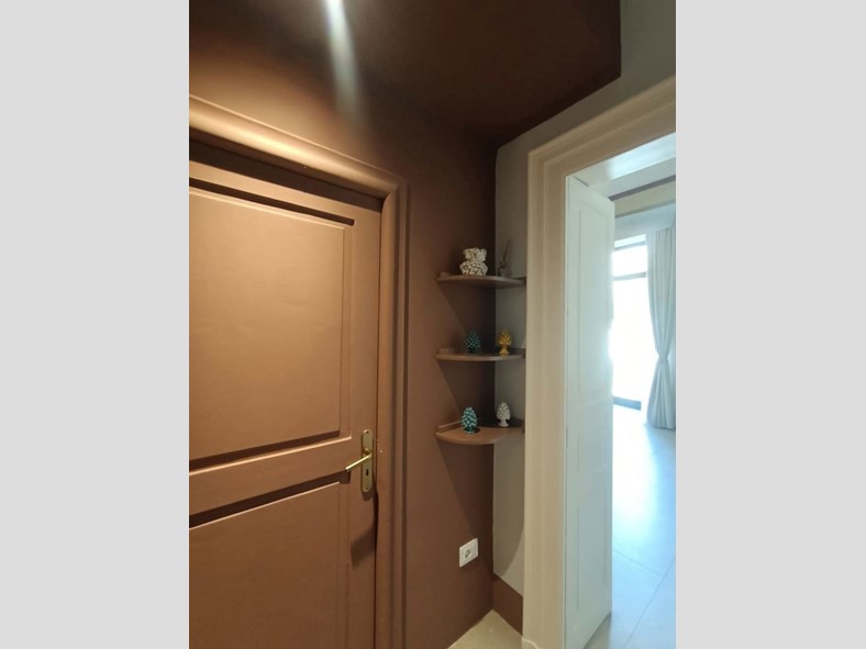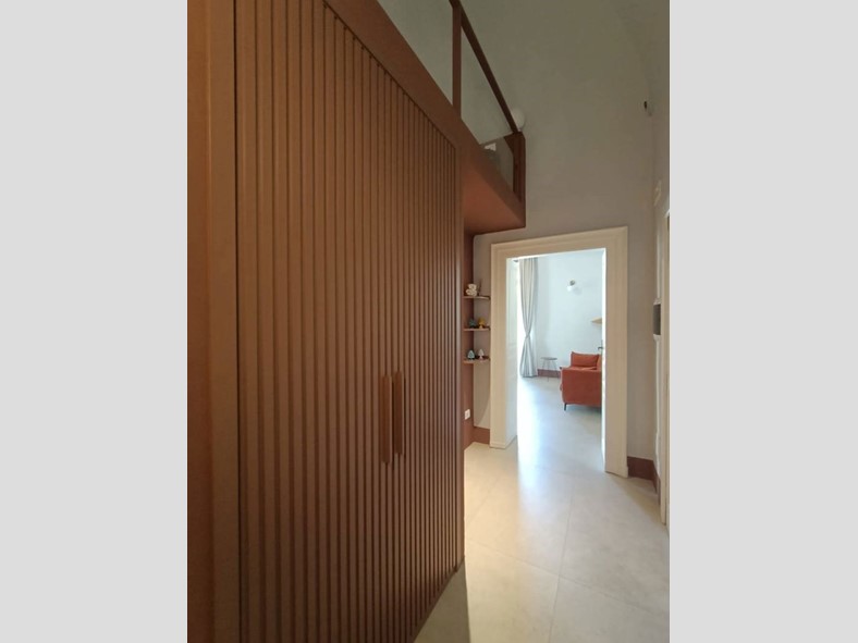L'abitazione molto luminosa con con 2 balconi che affacciano su corso Roma presenta volte a botte affrescate e si compone di ingresso con armadio a muro dotato di illuminazione interna, una zona giorno composta da una cucina dal design moderno Lube, ampio soggiorno con comodo divano letto e un bagno, dallo stile contemporaneo con ampia doccia