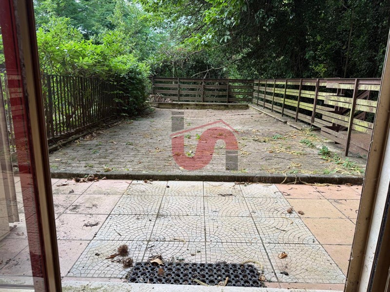 Una vetrata in legno e alluminio, con zanzariera, collega la zona living ad ampio terrazzo/giardino a livello di circa 30mq arricchito da vegetazione variegata. Il monolocale è munito di condizionatore e deumidificatore oltre a termoconvettori per il riscaldamento.