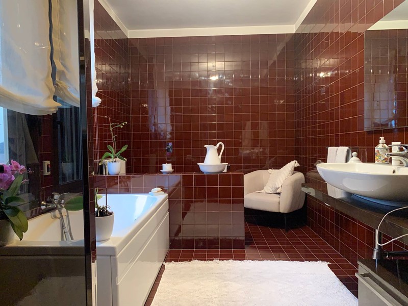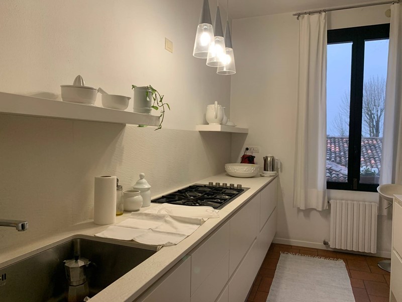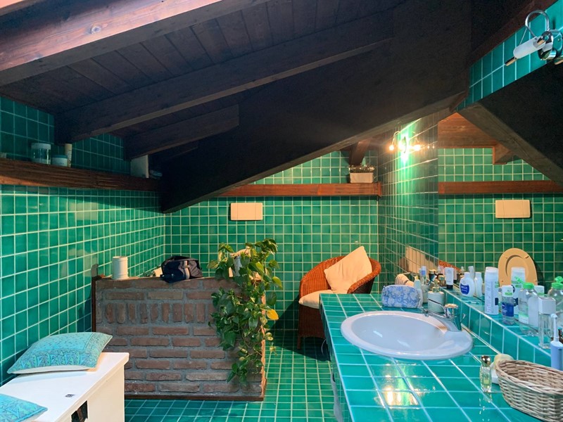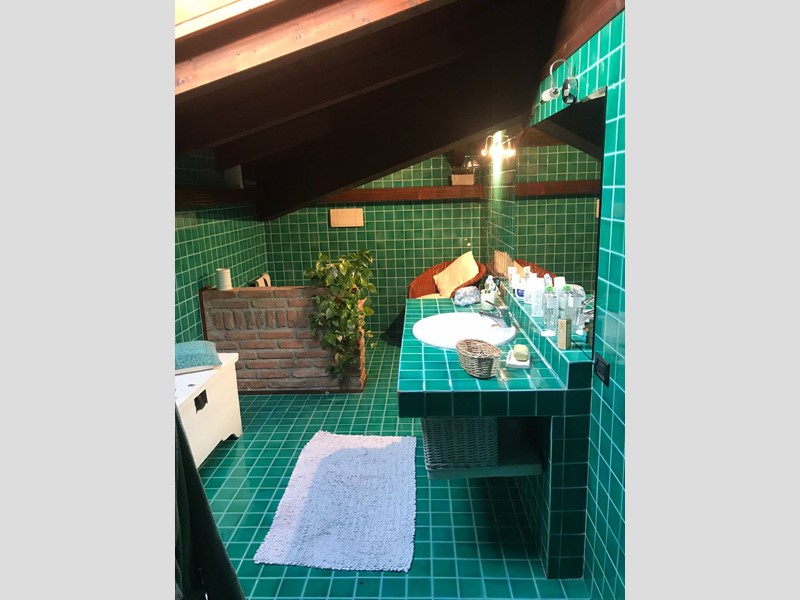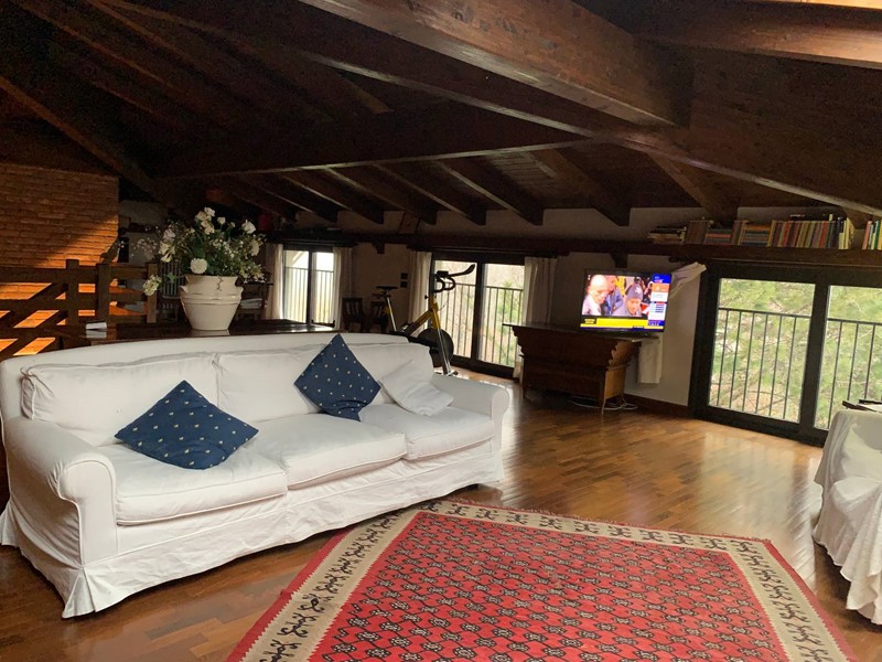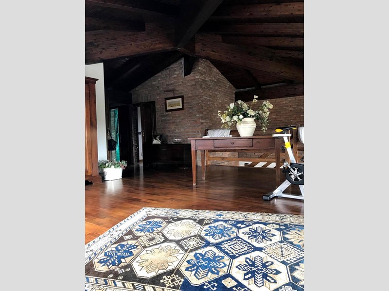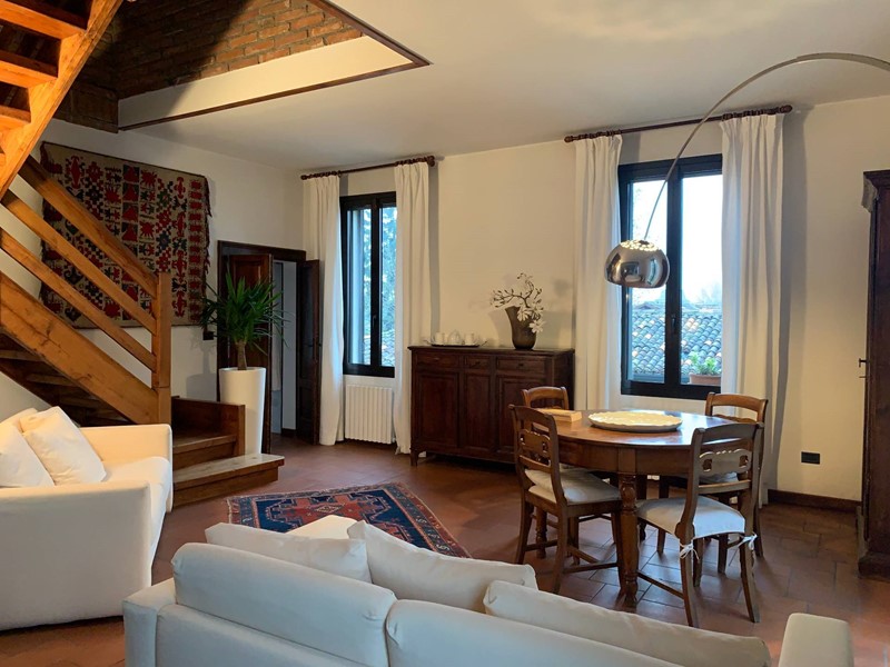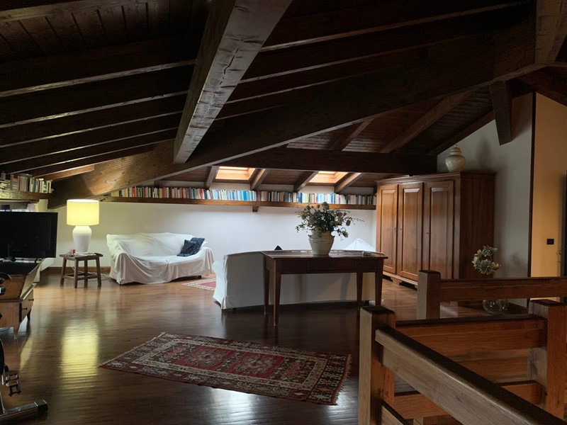 Appartamento su due livelli posto in villa divisa in due unità abitative con giardino privato. Al primo piano l'ingresso conduce ad un ampio salone con camino diviso in salotto e sala da pranzo, la cucina è moderna e funzionale, il corridoio porta ad un'ampia camera da letto matrimoniale e ad un bagno spazioso dotato di vasca da bagno e doccia. Nel soggiorno una scala in legno porta al piano mansardato composto da una grande zona salotto e relax, da una camera da letto matrimoniale, da un ampio bagno e da una comoda zona lavanderia. Un appartamento ampio e funzionale dotato di tutti i comfort in un contesto unico e circondato dal verde.