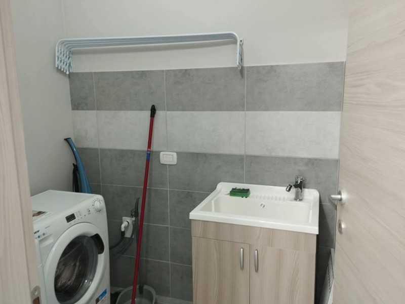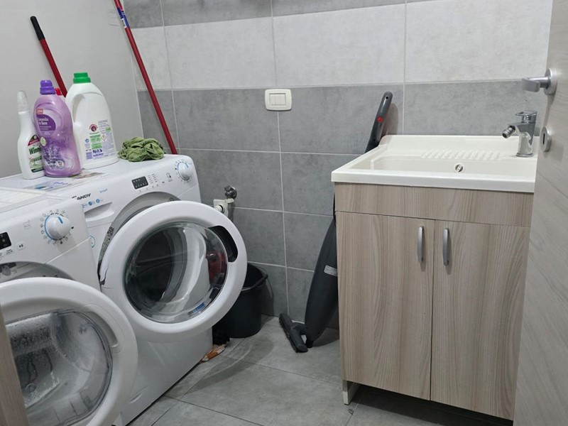 ? ingresso principale che conduce all'ampia zona giorno, composta da cucina a vista a induzione con penisola, soggiorno e spazi conviviali, altre 4 camere da letto (tutte arredate con letto matrimoniale, armadio, comodini, scrivania e TV) ed altri 2 bagni finestrati, oltre al disimpegno ed alla comoda lavanderia. A completare la soluzione, un locale ad uso cantina di circa 17 mq.