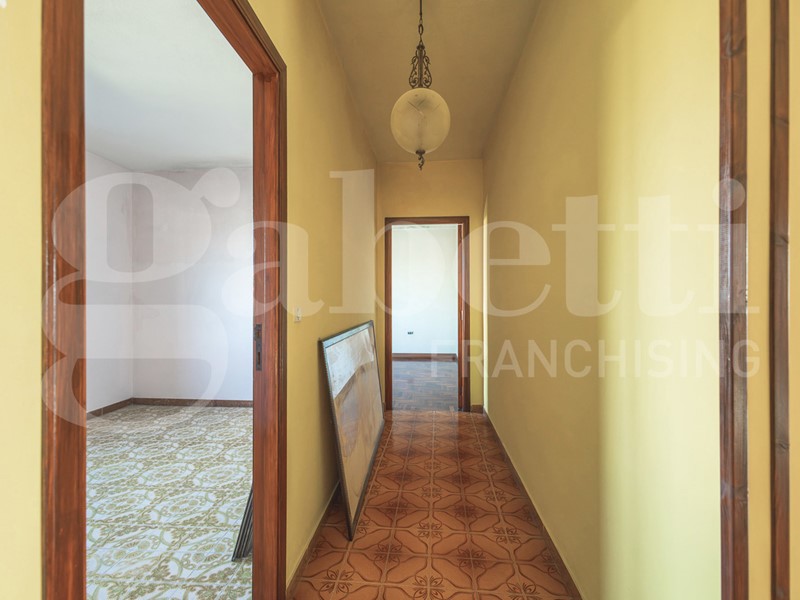 L'immobile, da ultimo progetto depositato per la ristrutturazione, è composto al piano terra da ingresso con ripostiglio e sotto scala; piano primo ampio soggiorno con angolo cottura con affaccio su terrazzo a livello, tre camere, un ripostiglio, due bagni e una veranda.