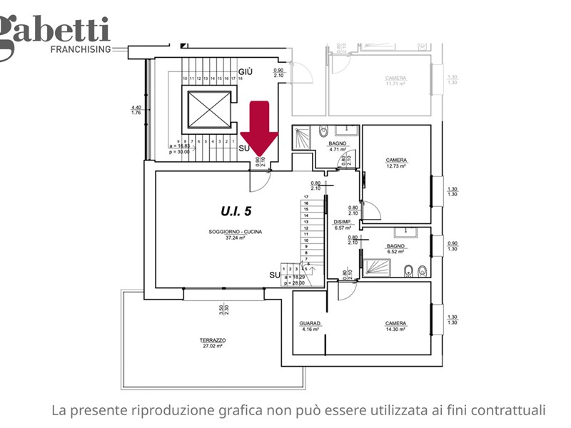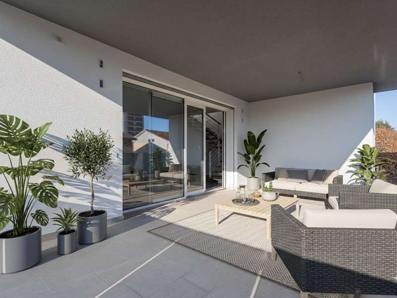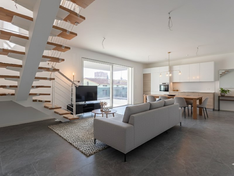 Strutturato in volumetria DUPLEX gode di un comodo ampio soggiorno con cucina a vista e affaccio sulla ampia terrazza da quasi 30 mq.