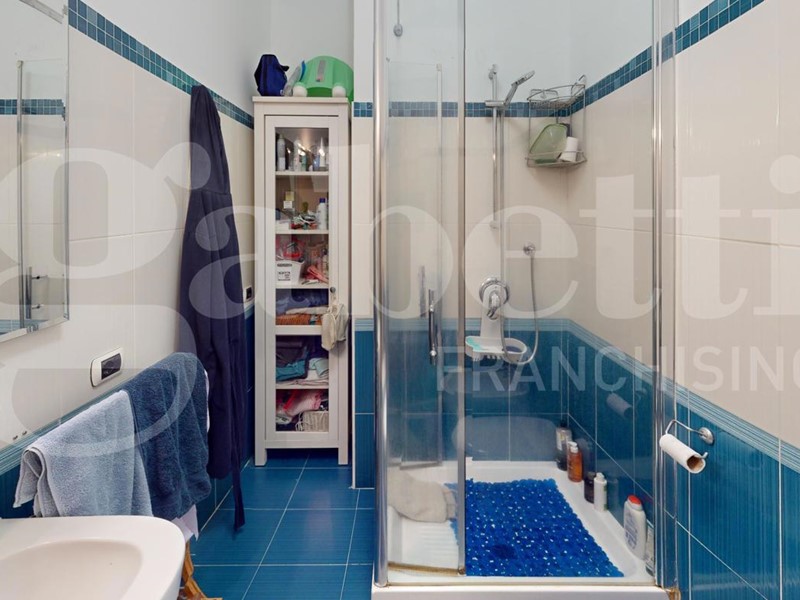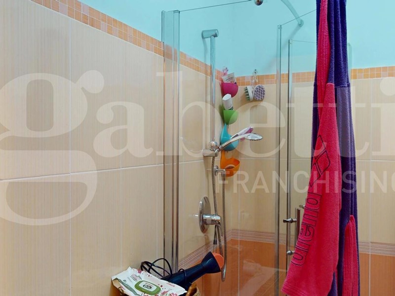 al piano seminterrato due camere da letto matrimoniali di 24 mq ciascuna e un bagno dotato di aspiratore e con box doccia.