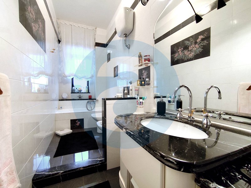 Pavimentazione in marmo. Infissi in pvc con doppio vetro. Porta di ingresso blindata, porte interne in legno di noce e vetro. Impianto di allarme. Climatizzatori in salone e camera matrimoniale. Riscaldamento centralizzato con sottocontatori di lettura. APE E.