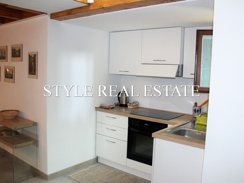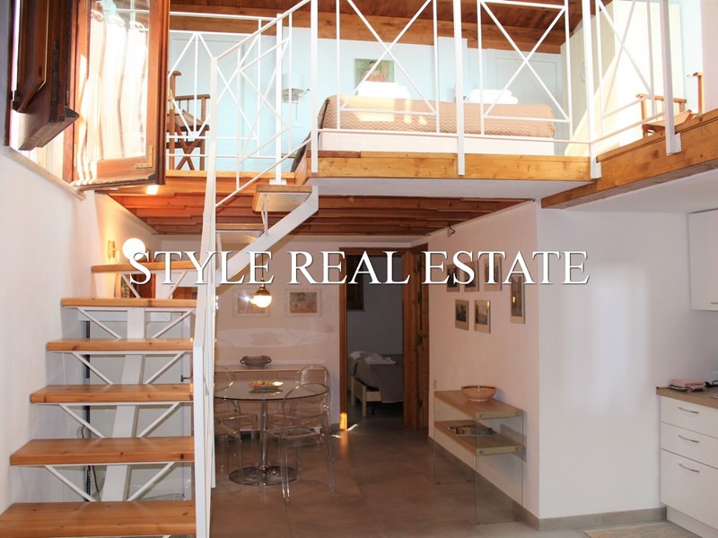 Al piano inferiore troviamo un luminoso soggiorno con angolo cottura a vista, una camera da letto e un bagno con doccia.