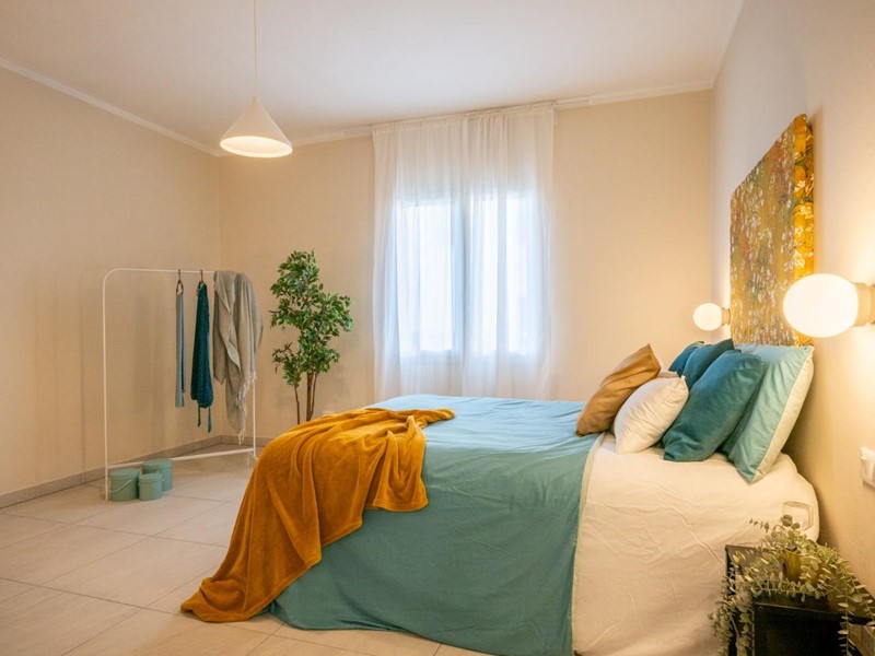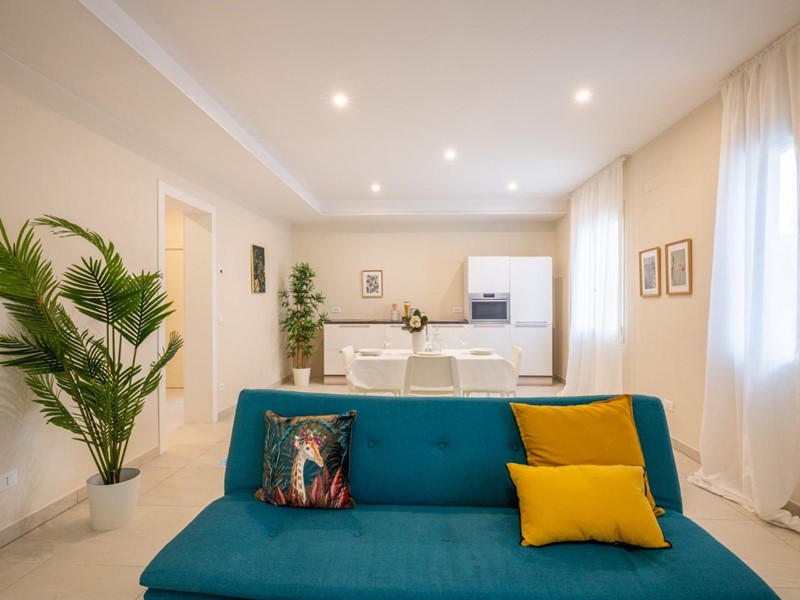 Ingresso, grande zona living composta da cucina e soggiorno open space, 2 bagni, disimpegno notte, 2 camere matrimoniali e ripostiglio lavanderia molto ampio.