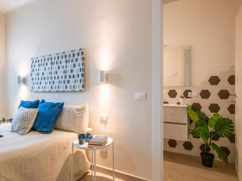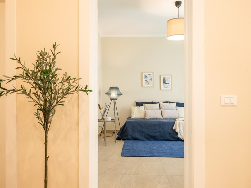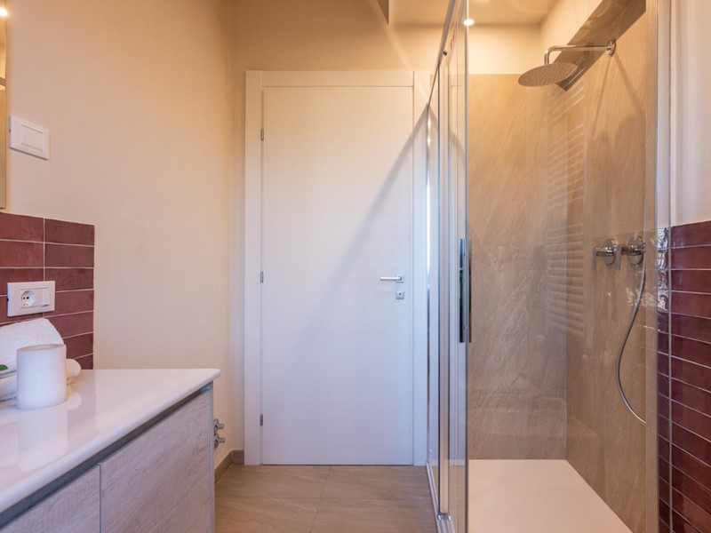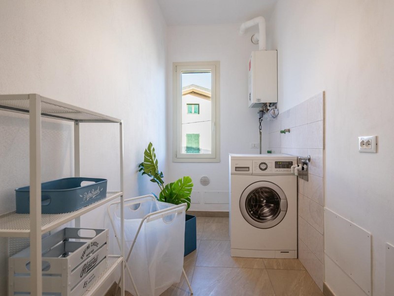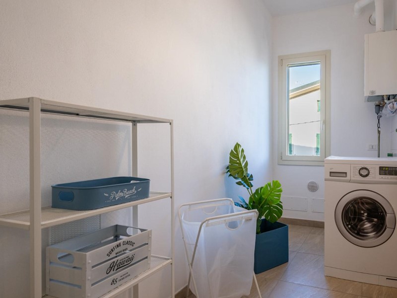 Dal giardino privato parte una scala esterna esclusiva che arriva al bel terrazzo panoramico del piano primo con l'accesso all'appartamento tradizionale. L'ingresso ci accompagna in una grande zona living composta da cucina abitabile, soggiorno, bagno, disimpegno notte, 2 camere matrimoniali di cui una con bagno privato e ripostiglio lavanderia molto ampio con accesso ad un sottotetto grande utilizzabile come altro ripostiglio.